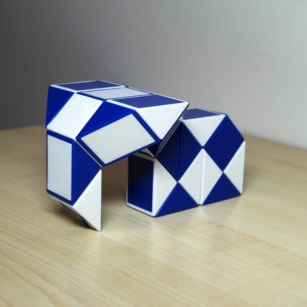 Thoạt nhìn, Snake Cube ở trạng thái ban đầu giống như là một khối lập phương bằng gỗ, nhưng khi bạn cố gắng xoay các mặt, bạn sẽ nhận ra rằng nó là một thứ hoàn toàn khác. Các khối nhỏ được liên kết với một nhau để nó có thể được kéo dài ra.