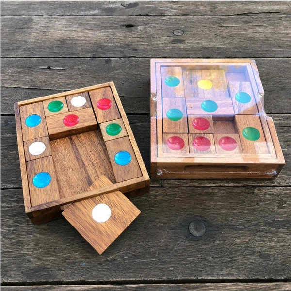 Trò chơi này chứa mười mảnh gỗ có thể trượt cùng trên một khay. Thử thách là đưa mảnh gỗ lớn nhất (màu vàng) ra khỏi các mảnh gỗ nhỏ mà không nhấc lên, không được vượt quá 103 lần trượt.
