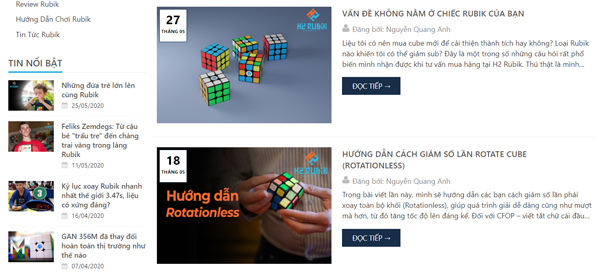 Tại website chính thức của bên mình - H2 Rubik đã có rất nhiều các bài viết hướng dẫn chơi từ đơn giản cho tới nâng cao, kỹ năng Rubik, review và các tin tức mới nhất. Bạn có thể theo dõi ngay tại trang Web của chúng mình nhé.