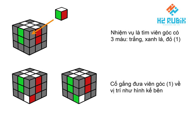 Định hướng nốt 3 viên góc chứa màu trắng còn lại dựa vào hướng dẫn trên.