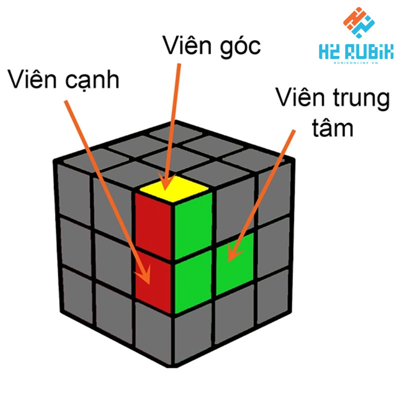 Rubik 3x3 bao gồm các viên trung tâm, viên cạnh, viên góc. Trong đó: