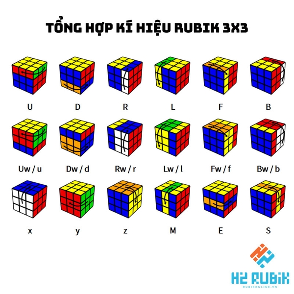 Để bắt đầu, bạn buộc phải đọc và học thuộc các ký hiệu Rubik 3x3 cơ bản sau: