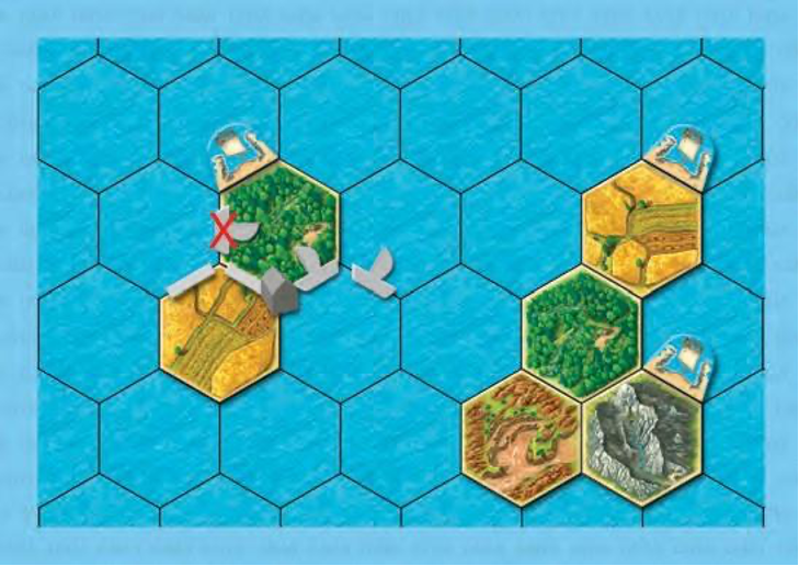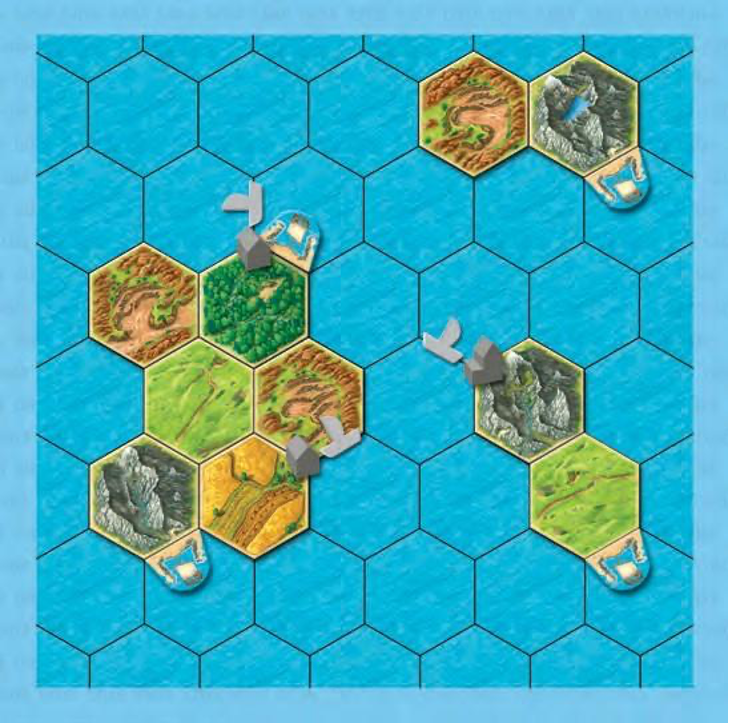 Ví dụ: Trong tình huống 1: Khi đến bờ biển mới, người chơi kiếm được token điểm chiến thắng khi người đó xây dựng khu định cư đầu tiên của mình trên một trong những hòn đảo nhỏ hơn. Khu định cư này sau đó có giá trị là 2 điểm chiến thắng: 1 cho khu định cư và 1 cho token.