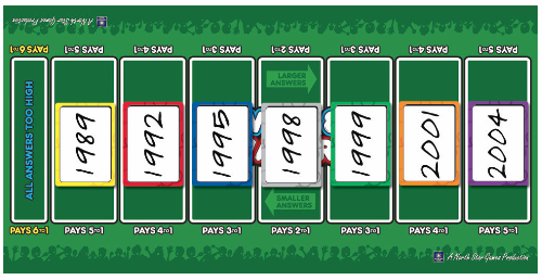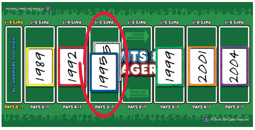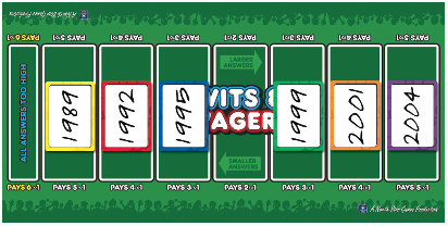 Ví dụ #2: Nếu câu trả lời đúng là 1985, thì “Tất cả các câu trả lời đều quá cao” là vị trí chi trả chiến thắng.