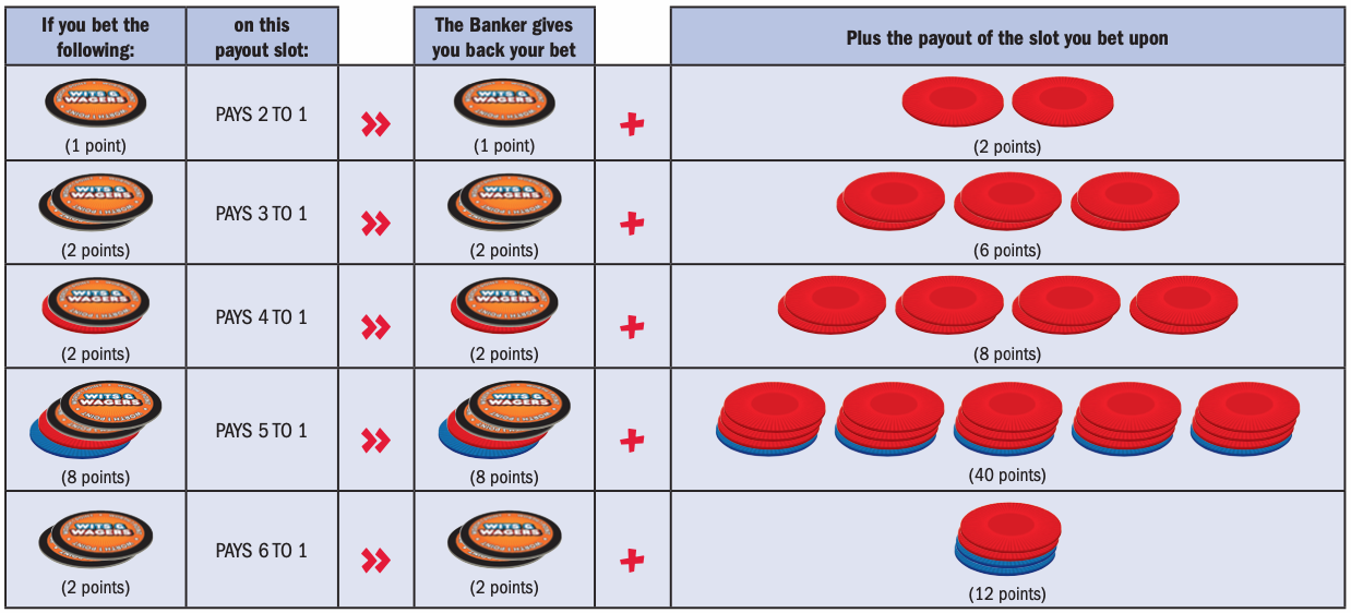 # Banker trả tiền cho mỗi người chơi (hoặc đội) đặt cược vào vị trí chi trả chiến thắng (xem ví dụ bên dưới).