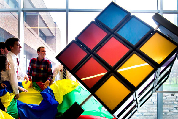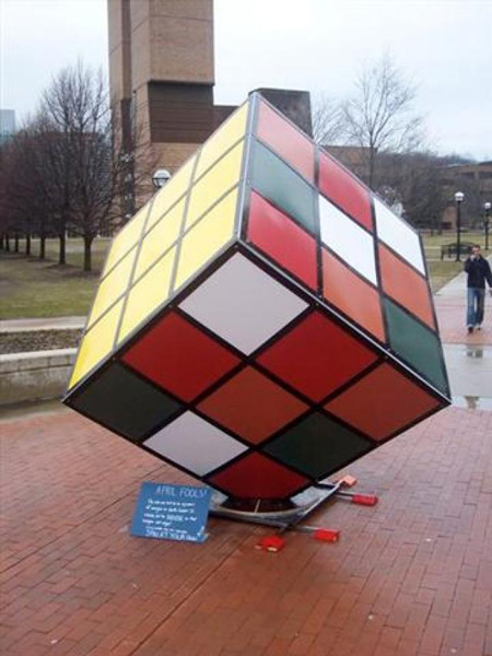 Sinh viên của Trường Đại học Michigan là những người may mắn được sờ tận tay một tác phẩm điêu khắc Rubik trong khuôn viên trường. Đáng ngạc nhiên rằng, nó bắt nguồn từ một trò đùa ngày Cá tháng Tư (năm 2008), các sinh viên đã phủ kín tác phẩm điêu khắc một khối vuông thành Rubik như hình dưới.
