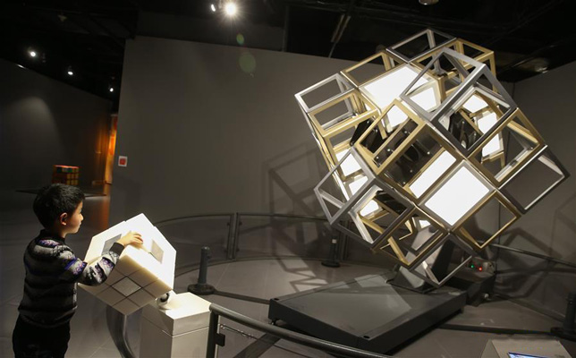 40 năm sau khi khối Rubik được phát hành lần đầu tiên vào ngày 26/4/2014, triển lãm Rubik bắt đầu hành trình lưu động trên khắp thế giới trong 7 năm tiếp theo. Địa điểm đầu tiên mở cửa là tại New Jersy và cứ mỗi 7 tháng họ sẽ thay đổi địa điểm. Một trong những tác phẩm chính của triển lãm là một khối Rubik khổng lồ bằng kim loại, cao hơn 3 mét. Nó nặng 1.000 kg và có thể xoay như một chiếc 3x3 thông qua bảng điều khiển. Khối lập phương này được tạo nên từ một bộ khung rỗng với các đường viền kim loại cực kỳ chắc chắn.