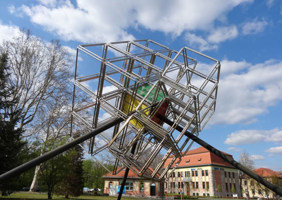 Thoạt nhìn có vẻ như đây là một bộ khung kim loại giống với Giant Cube, nhưng thực ra mô hình Rubik chính là thứ nằm sâu bên trong. Bộ khung bao bọc bên ngoài giúp khối lập phương không bị rơi cũng như tạo nên vẻ ngoài đẹp mắt. Được thiết kế bởi chính cha đẻ của khối lập phương - ông Ernő Rubik và được tạo ra bởi Róbert Németh vào năm 2010. Bạn có thể tìm thấy tác phẩm này này tại Gázgyári Lakótelep, Budapest (quê hương của ông Erno).