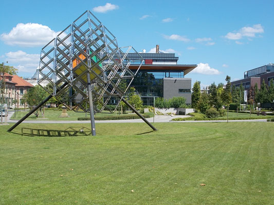 Khối Rubik này nằm tại lối vào của công viên Graphisoft, Budapest