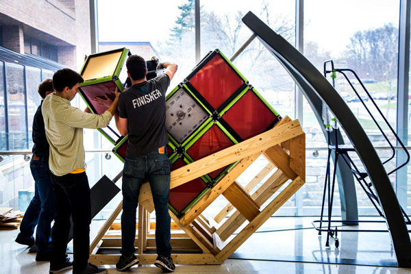 Điều này đã trở thành nguồn cảm hứng để tạo ra một khối lập phương khổng lồ từ hơn 270 tấn thép cho khuôn viên phía bắc của trường Đại Học. Nó rất được các sinh viên thích thú và nhà Trường đã không thể bỏ nó đi, mặc dù đã gỡ ra, lắp lại nhiều lần. Và sau gần một Thập Kỷ chờ đợi, Trường Đại Học Michigan cuối cùng đã hoàn thiện mô hình Rubik khổng lồ của mình. Với trọng lượng gần 700 kg, khối lập phương có thể giải bằng tay này được công nhận là lớn nhất từng được tạo ra.