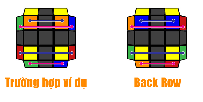 Sau khi đã nhận biết nhóm xong, tiếp theo bạn hãy nhìn vào màu sắc sticker để tìm ra mối liên hệ giữa chúng. Chúng ta chỉ xem xét sự liên hệ giữa các màu sticker đối nhau (đỏ >< cam, trắng >< vàng, xanh lá >< xanh dương) và giống nhau mà thôi. Không nên gán một màu cụ thể vì nó có thể thay đổi.
