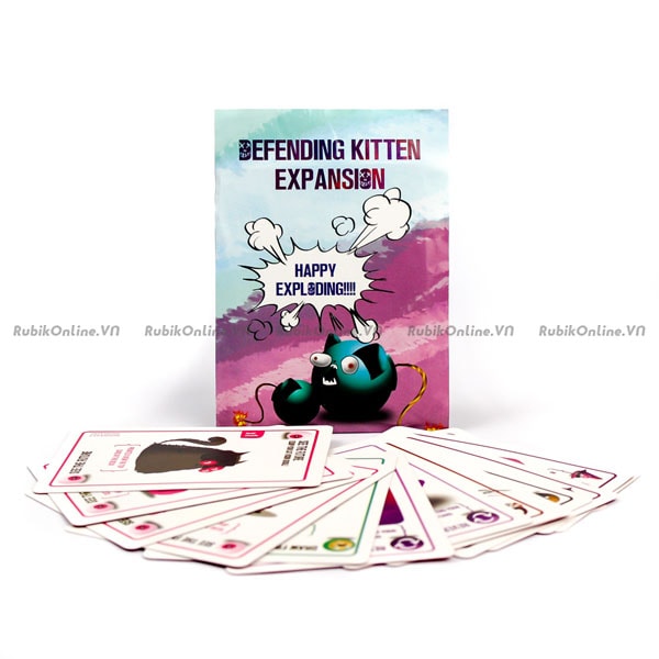 Defending Kittens – Mèo Nổ Mở Rộng Tiếng Việt bao gồm 14 lá chức năng mới như Nổi cáu, Biến đổi tương lai,… hứa hẹn sẽ mang lại những pha đảo ngược tình thế ngoạn mục gấp trăm lần. Bản mở rộng phải kết hợp với bản Mèo Nổ gốc để chơi.