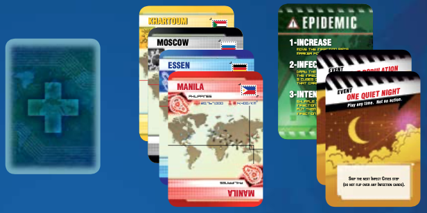 - 59 thẻ Người chơi (48 thẻ thành phố, 6 thẻ đại dịch, 5 thẻ sự kiện)