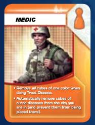 Nếu một căn bệnh đã được chữa khỏi, anh ta sẽ tự động loại bỏ tất cả các khối có màu đó khỏi một thành phố, chỉ bằng cách đặt nó vào đấy. Điều này không được coi là một hành động.