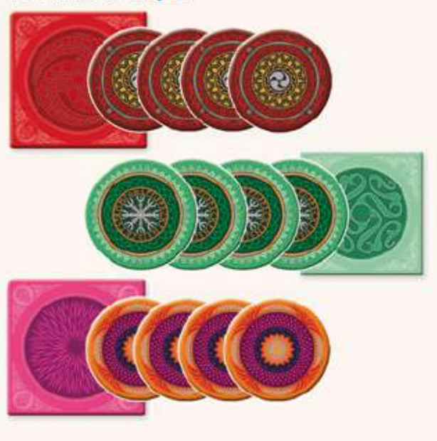 Mỗi người chơi Skull board game chọn 4 đĩa và thảm bài cho mỗi bộ lạc.