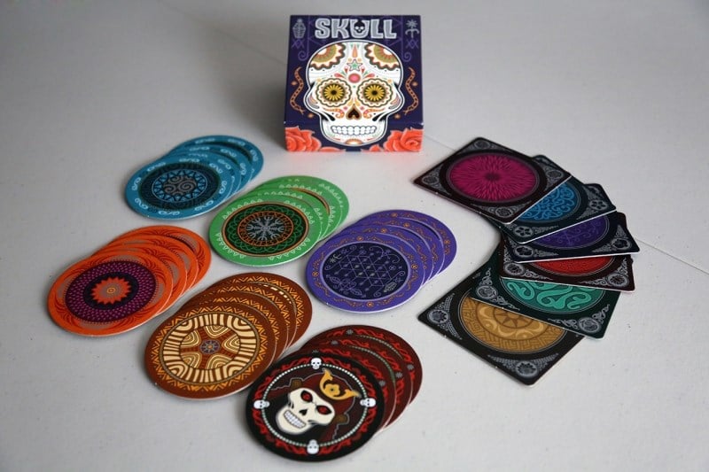 Skull board game là trò chơi thao túng tâm lý thú vị, một trò chơi trong đó yếu tố tâm lý có thể quyết định thắng thua. Mỗi người chơi đánh một đĩa úp, sau đó lần lượt chơi thêm đĩa - cho đến khi có ai tự tin thách thử rằng mình sẽ không lật phải đầu lâu. Những người chơi khác sau đó có thể cá cược cao hơn người chơi, rằng họ có thể lật nhiều thẻ hơn. Người trả giá cao nhất sau đó phải lật số đĩa đó lên, bắt đầu từ đĩa của mình. Nếu anh ta chỉ lật hoa hồng, anh ta thắng; nếu anh ta lật một đầu lâu, anh ta thua. Người có hai thử thách thành công sẽ giành chiến thắng trong trò chơi Skull board game.