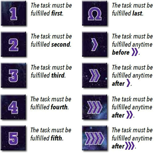 Nếu một nhiệm vụ hiển thị biểu tượng này, chỉ huy sẽ đảm nhận việc phân phối các thẻ công việc. Chuẩn bị nhiệm vụ như bình thường, nhưng không đặt bất kỳ thẻ công việc nào ở giữa bàn.