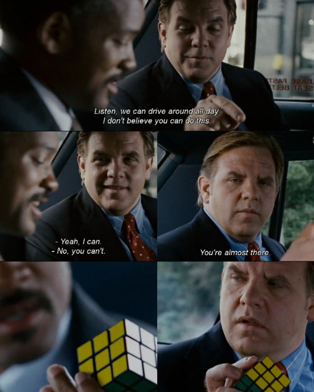 Cho tới cuối phim, Will Smith đã học được cách giải khối lập phương đúng cách theo kiểu tự nghiệm (không học bất cứ giải pháp nào). Và thậm chí, anh đã giải Rubik trực tiếp trong một chương trình trò chuyện cùng khách mời. Bộ phim lấy bối cảnh năm 1981, thời điểm được coi là “năm của người vô gia cư”, đây cũng là lúc Rubik ra mắt trên thế giới được 1 năm.
