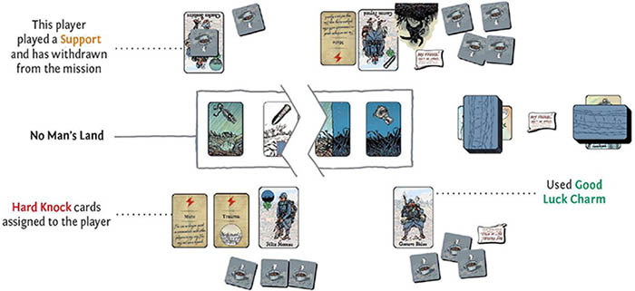 - tất cả người chơi đã rút lui, trong trường hợp đó Nhiệm vụ thành công. Các thẻ trong No Man's Land bị loại bỏ.