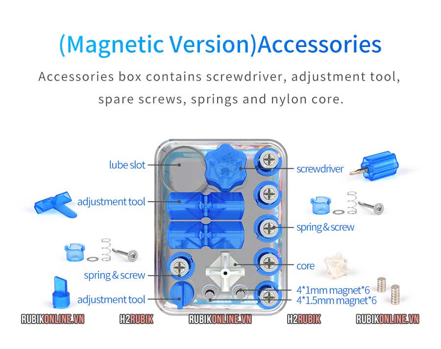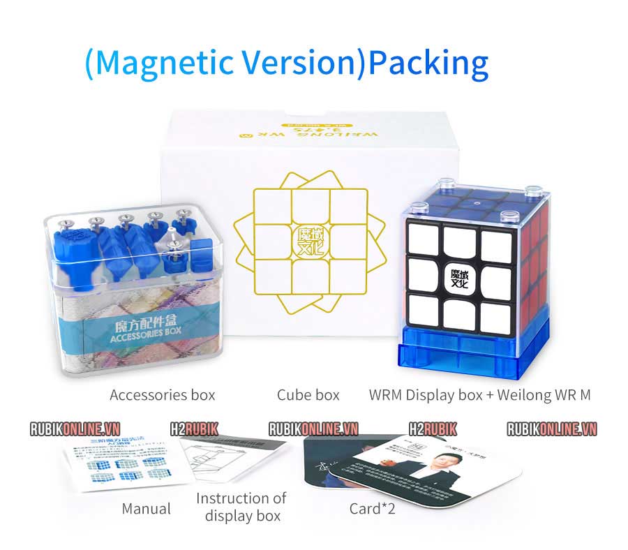 MoYu Weilong WR Magnetic (Đen + Stickerless) là phiên bản không gờ của Weilong GTS 3 M. Phiên bản mới này được cải tiến độ chính xác mà chơi mượt mà hơn nhiều so với bản GTS3. Bộ sản phẩm đi kèm với một bộ lò xo, nam châm dự phòng cùng với dụng cụ chỉnh ốc của MoYu