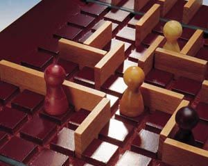 Bằng cách đặt hàng rào, bạn buộc đối thủ phải di chuyển xung quanh nó và tăng số lần di chuyển mà họ cần phải thực hiện. Nhưng hãy cẩn thận, bạn không được phép khóa đường đi của đối thủ, phải luôn để ít nhất một ô vuông cho họ (hình 5).
