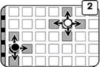 Các quân tốt được di chuyển từng ô một, theo chiều ngang hoặc chiều dọc, tiến hoặc lùi, không bao giờ di chuyển theo đường chéo (hình 2).