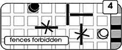 Hàng rào phải được đặt giữa 2 bộ 2 ô vuông (hình 4).