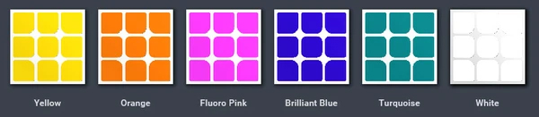 Khi chọn hệ màu cho khối lập phương của bạn, điều quan trọng là phải có độ tương phản tốt giữa các màu với nhau, đặc biệt là giữa màu xanh / xanh lá cây và cam / đỏ. Chúng tôi đề xuất các hệ màu sau: