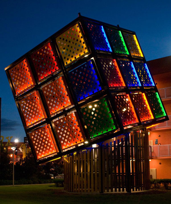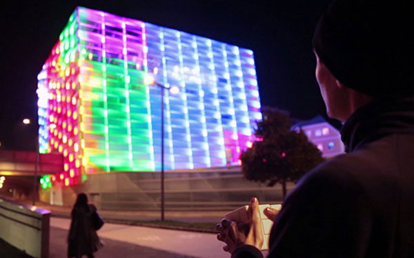 Dự án Puzzle Facade do Javierinoisert tạo ra,biến tòa nhà Ars Electronica Futerlab thành một khối Rubik có thể chơi được. Anh ta đã kết nối hệ thống đèn trên tất cả các mặt với một khối lập phương để có thể điều khiển từ xa.